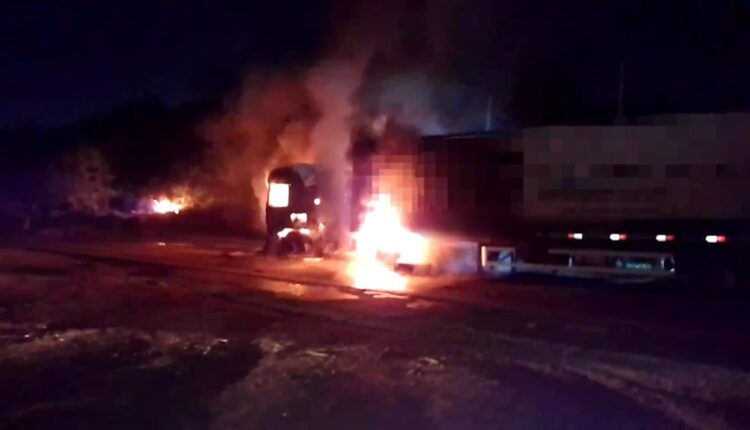 Vídeo Elementos não identificados incendeiam carreta e depredam outros veículos em Ariquemes-RO