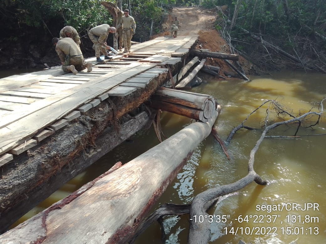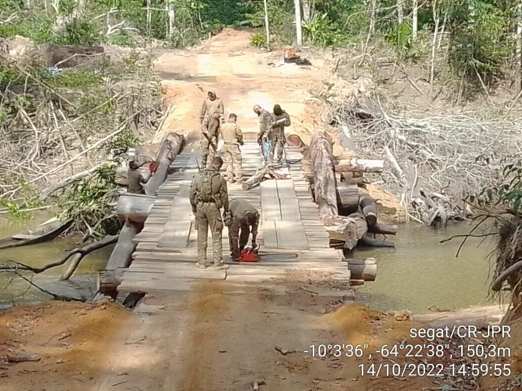 Na operação, que contou com apoio da FUNAI e IBAMA, foi destruída uma grande ponte irregular que dava acesso indevido à TI